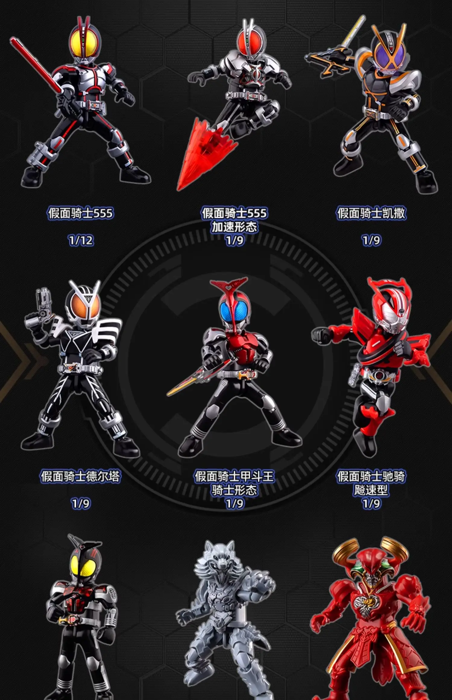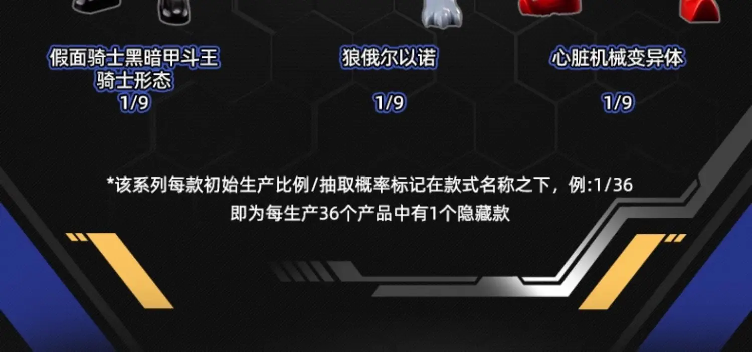 Cada caja incluye una figura aleatoria entre los modelos disponibles, con acabados metálicos y poses dinámicas. Ideal para coleccionistas de Tokusatsu y fans de Kamen Rider que buscan rarezas fuera del mercado japonés.